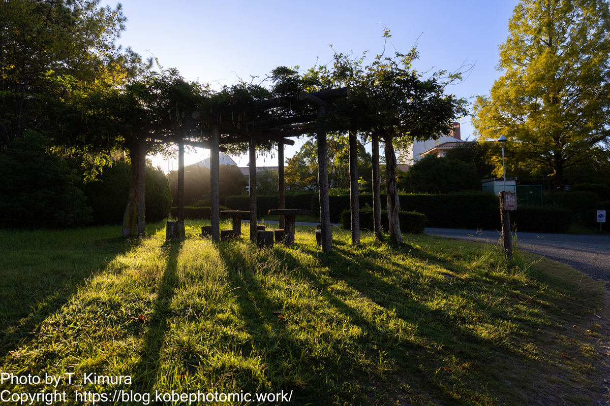 上の写真は9月末頃でなかなか暑い日に撮ったんですが、早朝で影が長いからか少し秋っぽい感じがします。